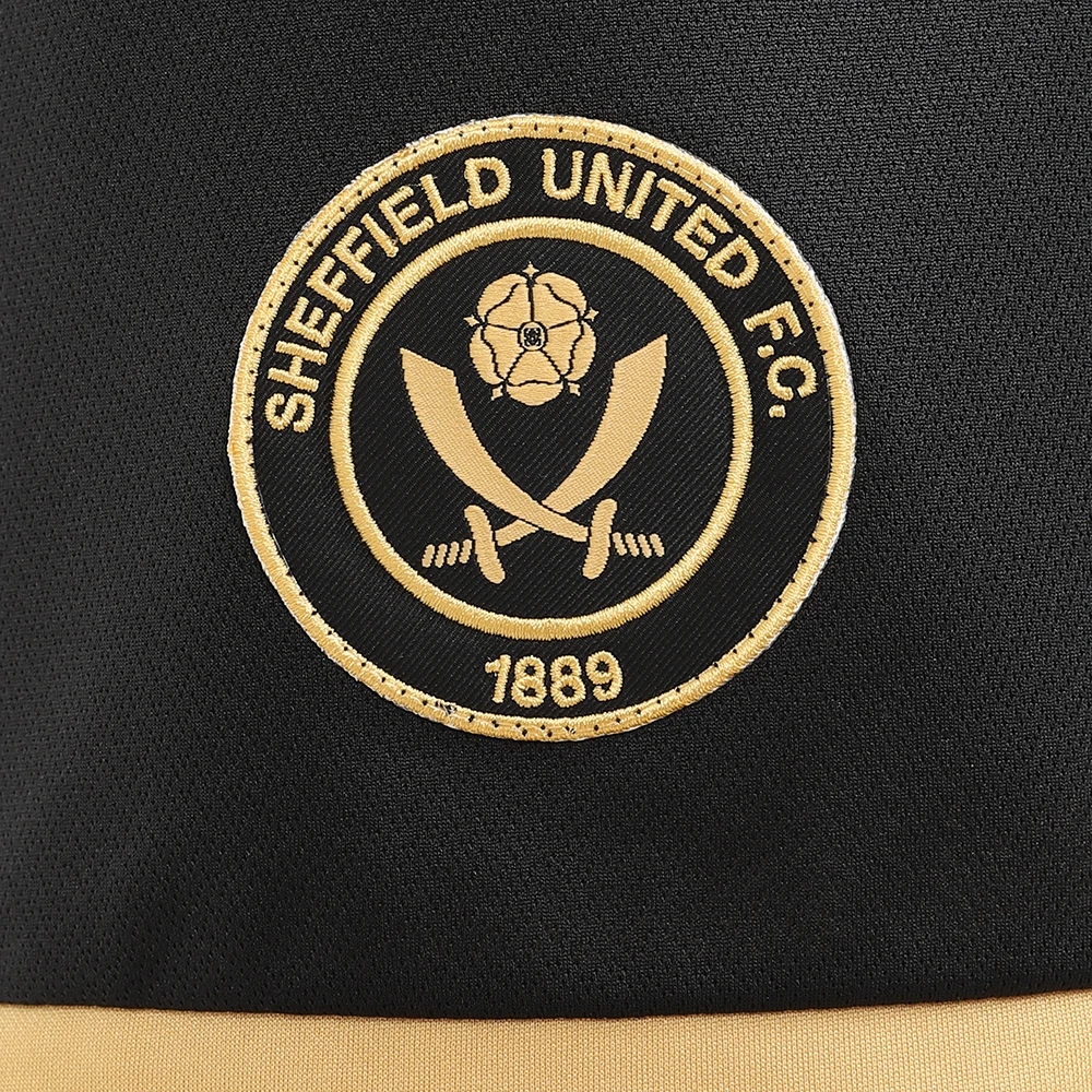 Our 2022/23 junior 3rd shorts have arrived. This years shorts are predominantly black with gold trim around the leg. The Erreà logo on the left leg, with the Sheffield United crest on the right.