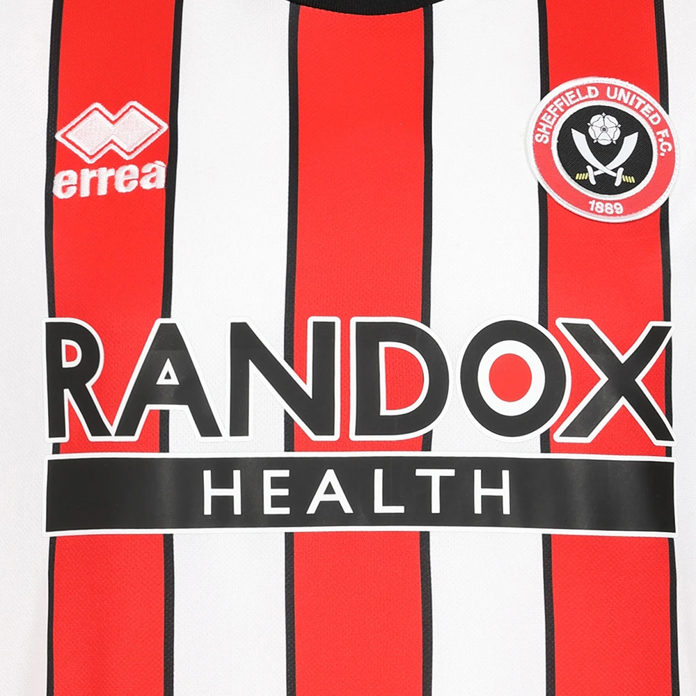 - The Errea logo on the right-hand side and the SUFC crest positioned proudly on the left.